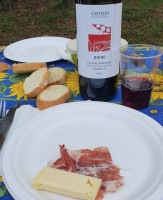 画像は、2021年秋のネッビオーロ収穫時、ベルヴェデーレの畑で。収穫時期は、こんな風にブドウ畑にテーブルを作ってみんなでランチタイムです。